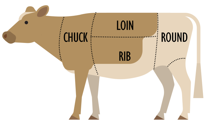 척플랫(Chuck Flat)과 본갈비(Bone-in Chuck Short Rib) 사이에 위치하며 늑골 2~5번 사이에 해당 하는 부위